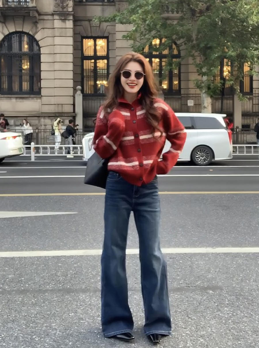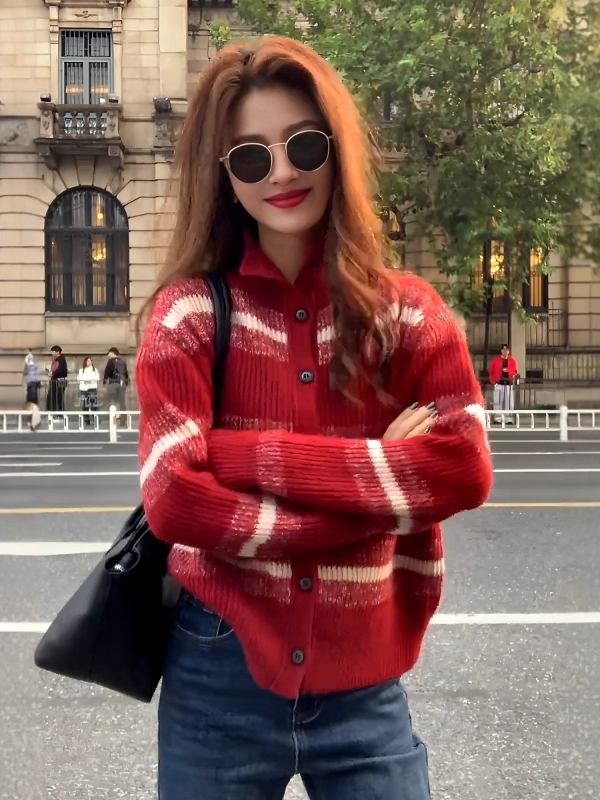 節日氛圍感單品|紅色費爾島提花針織外套|可內搭可外穿|秋冬復古毛衣