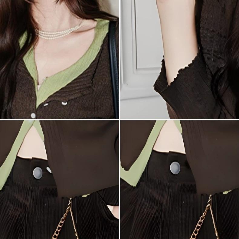 復古慵懶設計師套組|細節鈕扣高領毛衣 | 兩色入 | 顯瘦咖色七分褲
