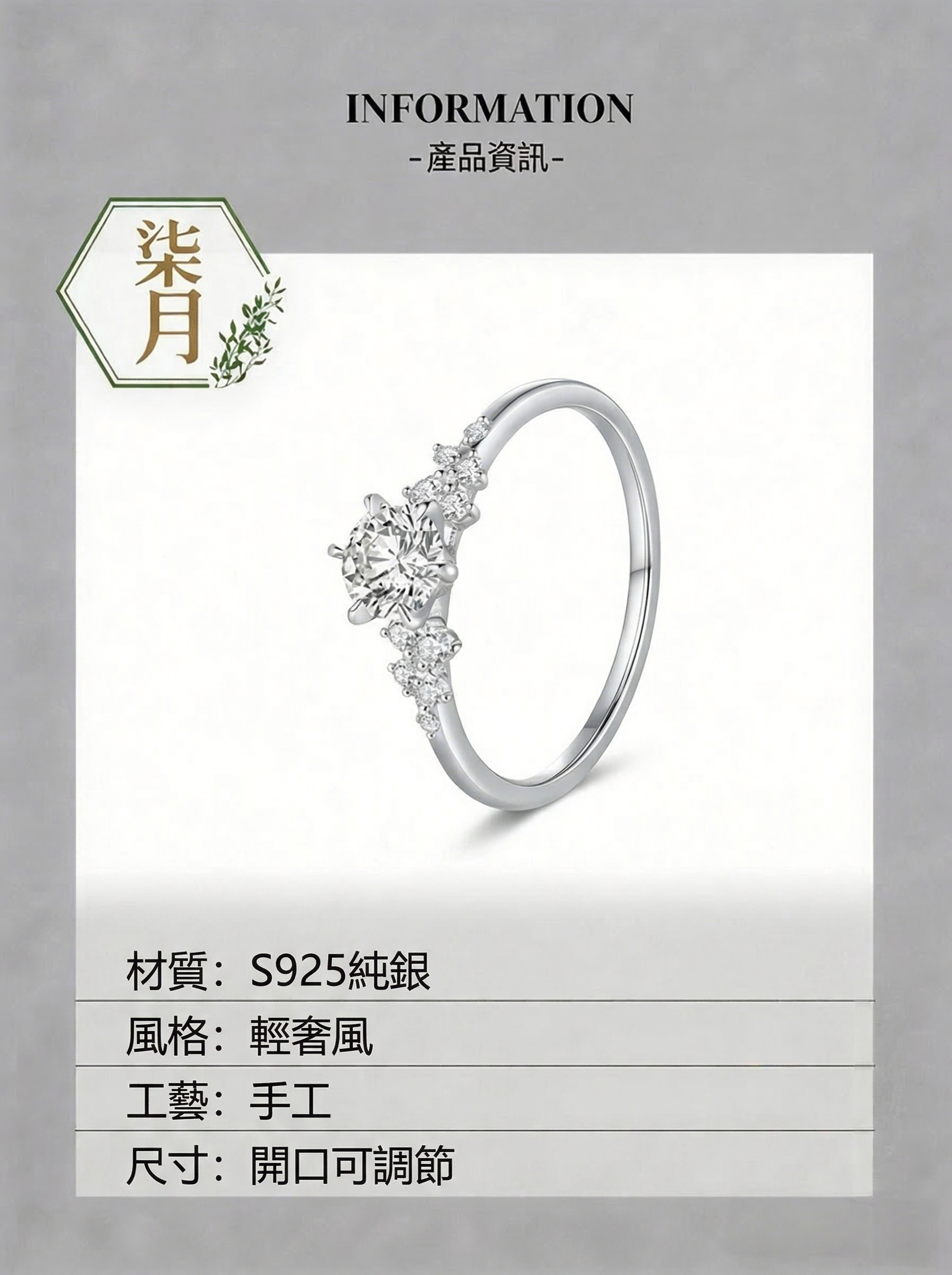 柏林情書開口可調節戒指 | S925 純銀閃鑽簇擁指環