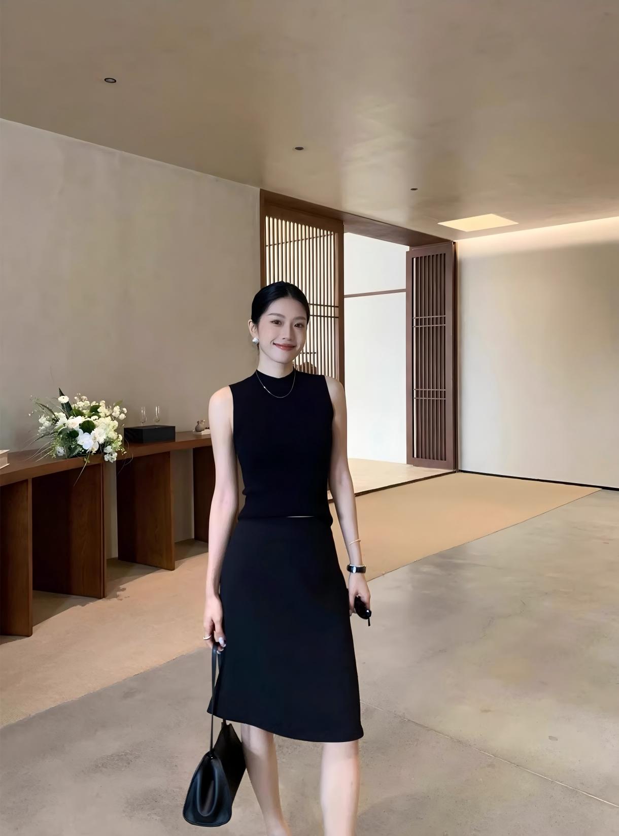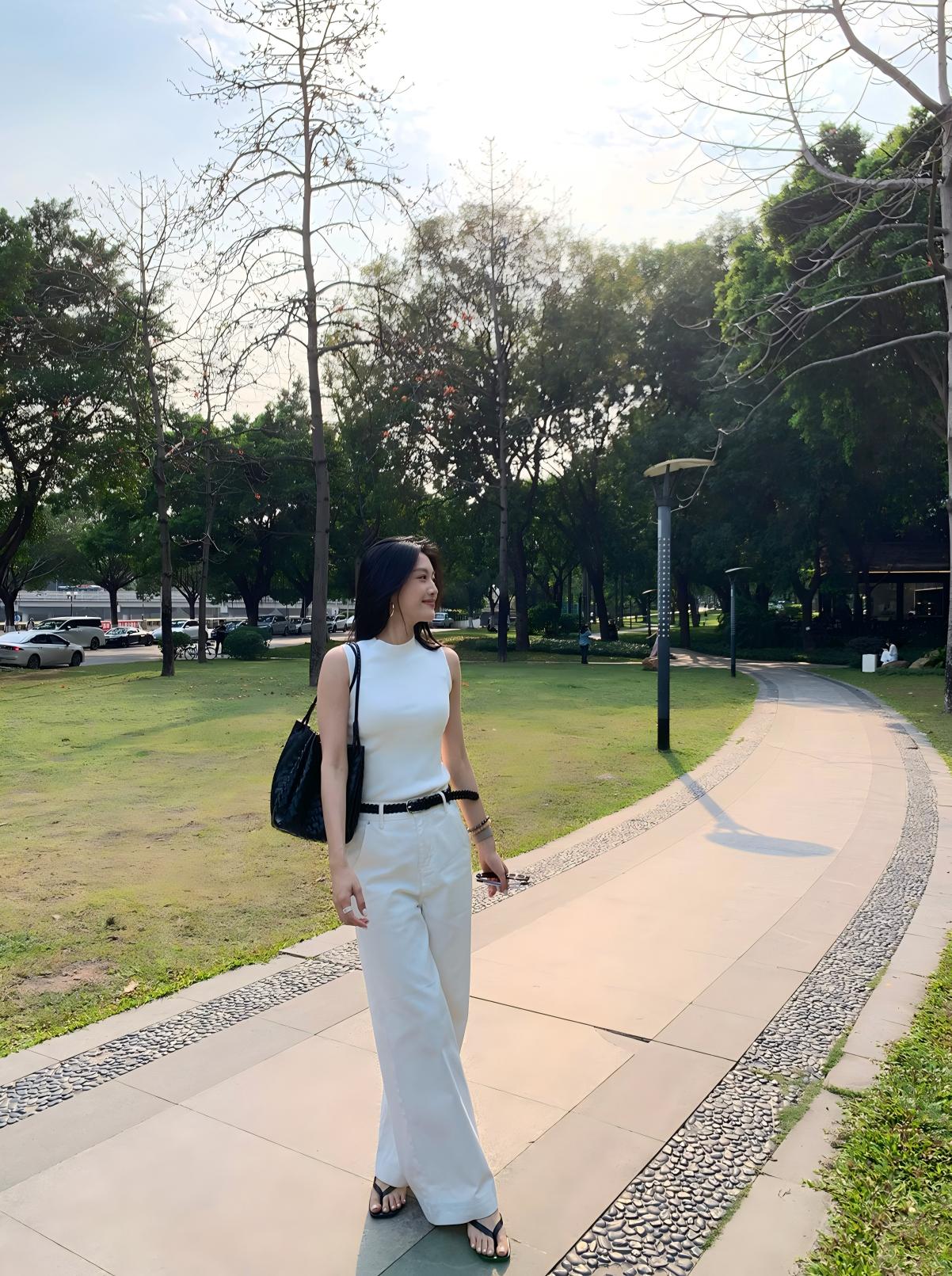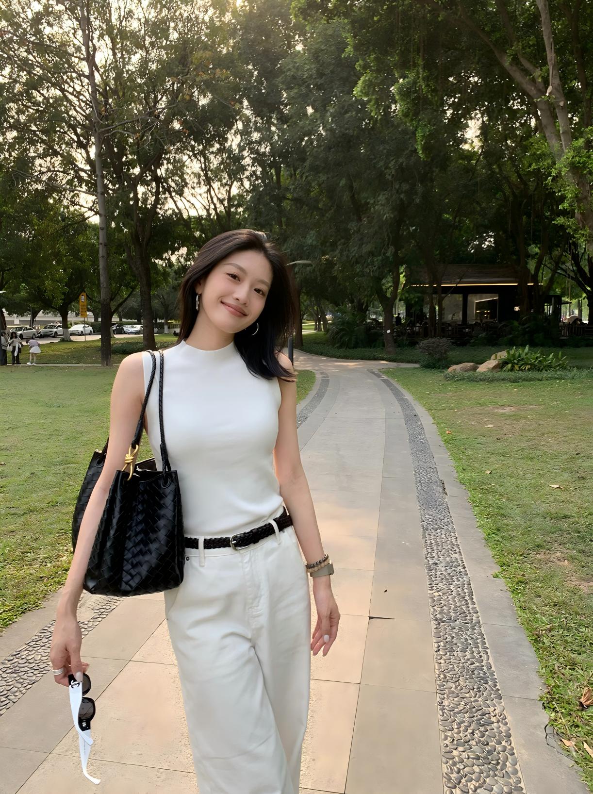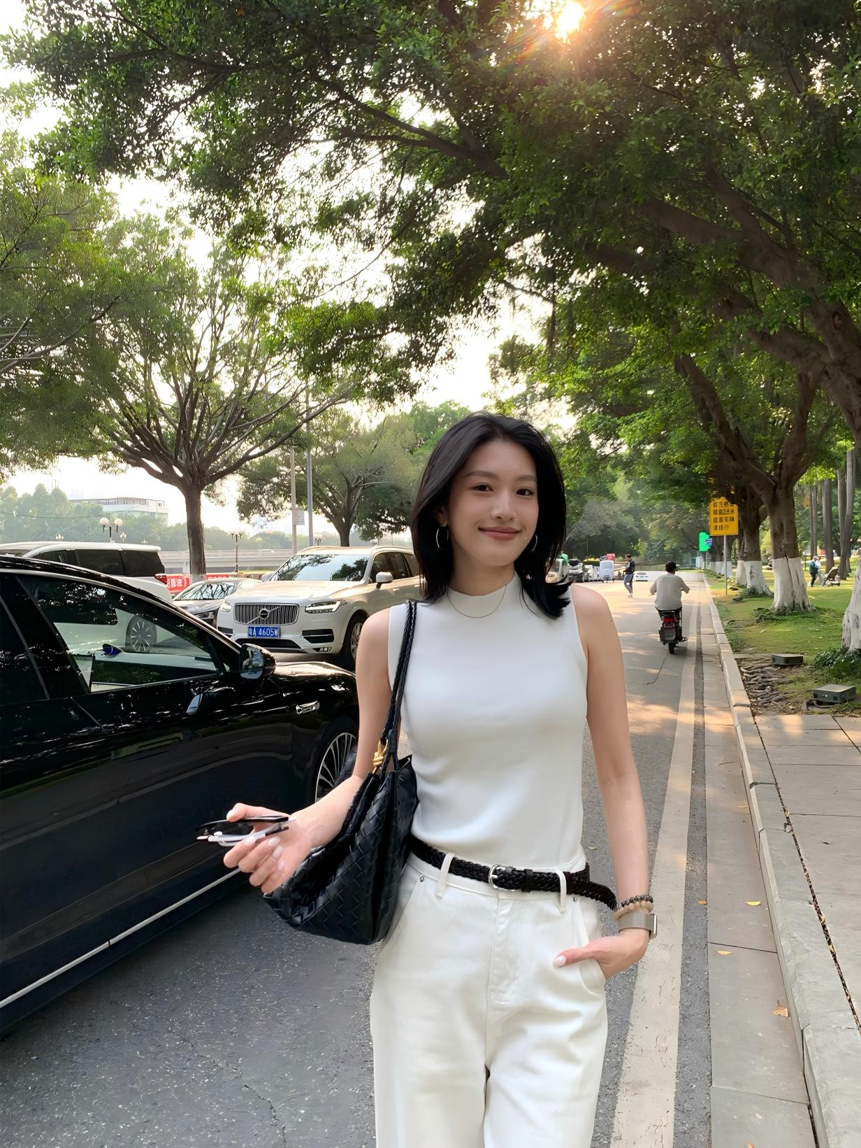 【預售】夏季純色系顯瘦套裝|白色針織背心|白色闊腿牛仔褲
