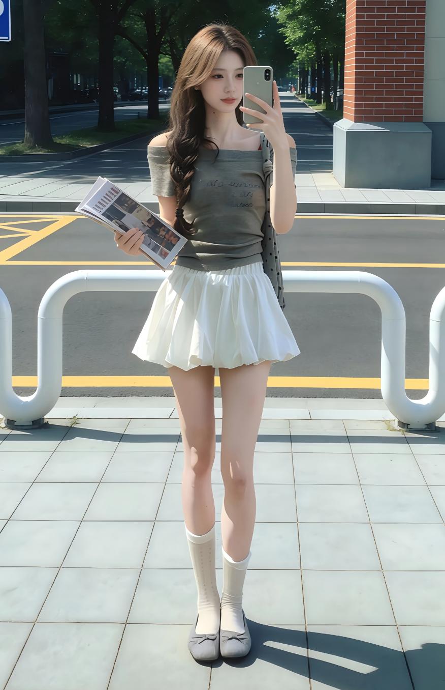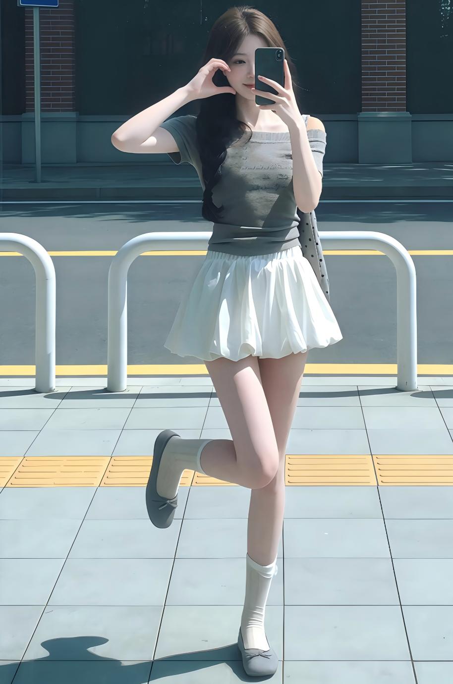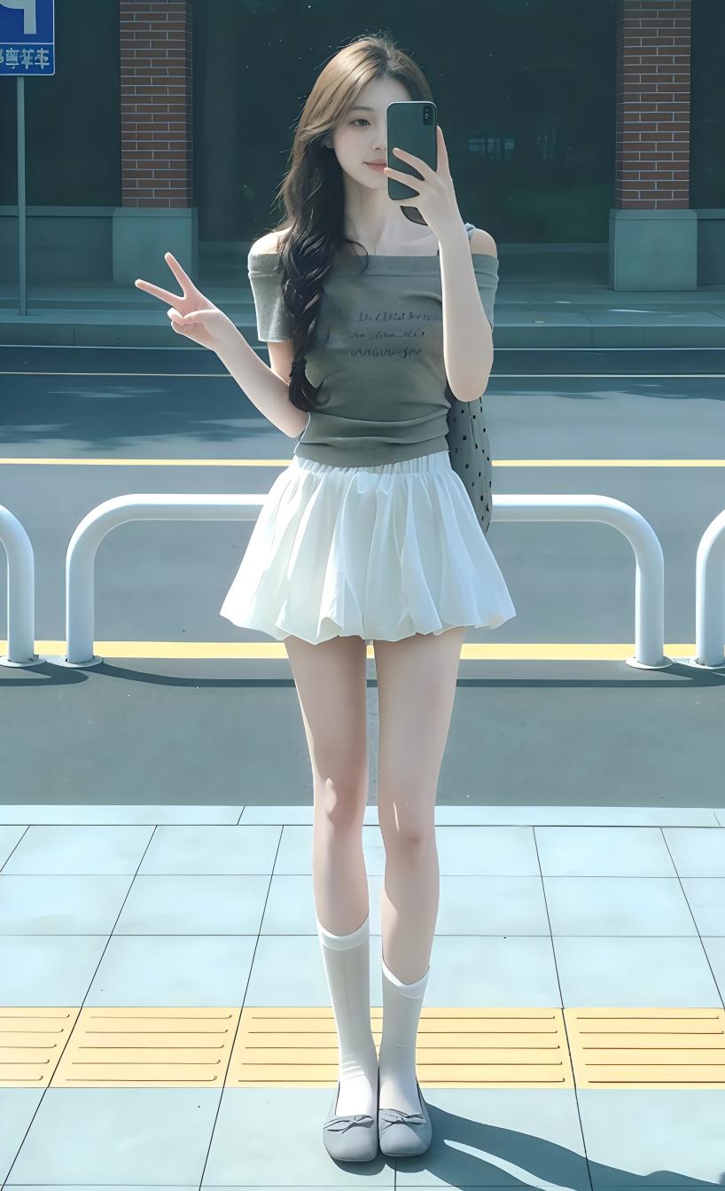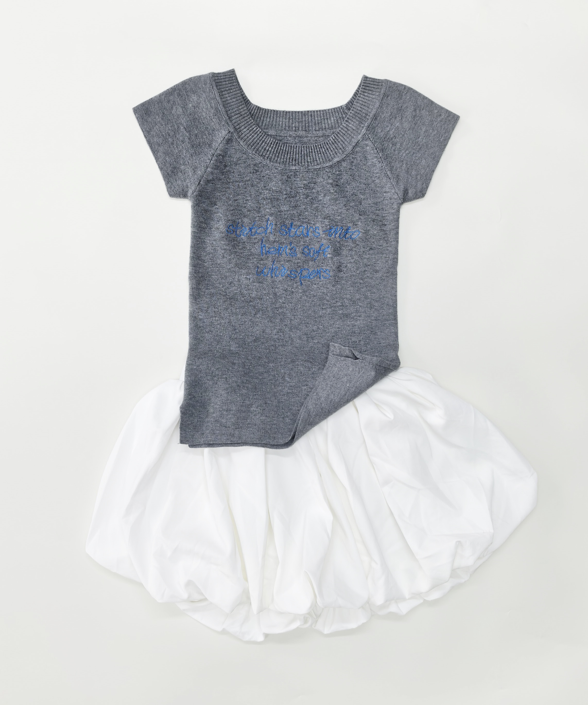 韓系溫柔風氣質套裝|字母刺绣針織短袖|高腰白色短裙|時尚一整套兩件組