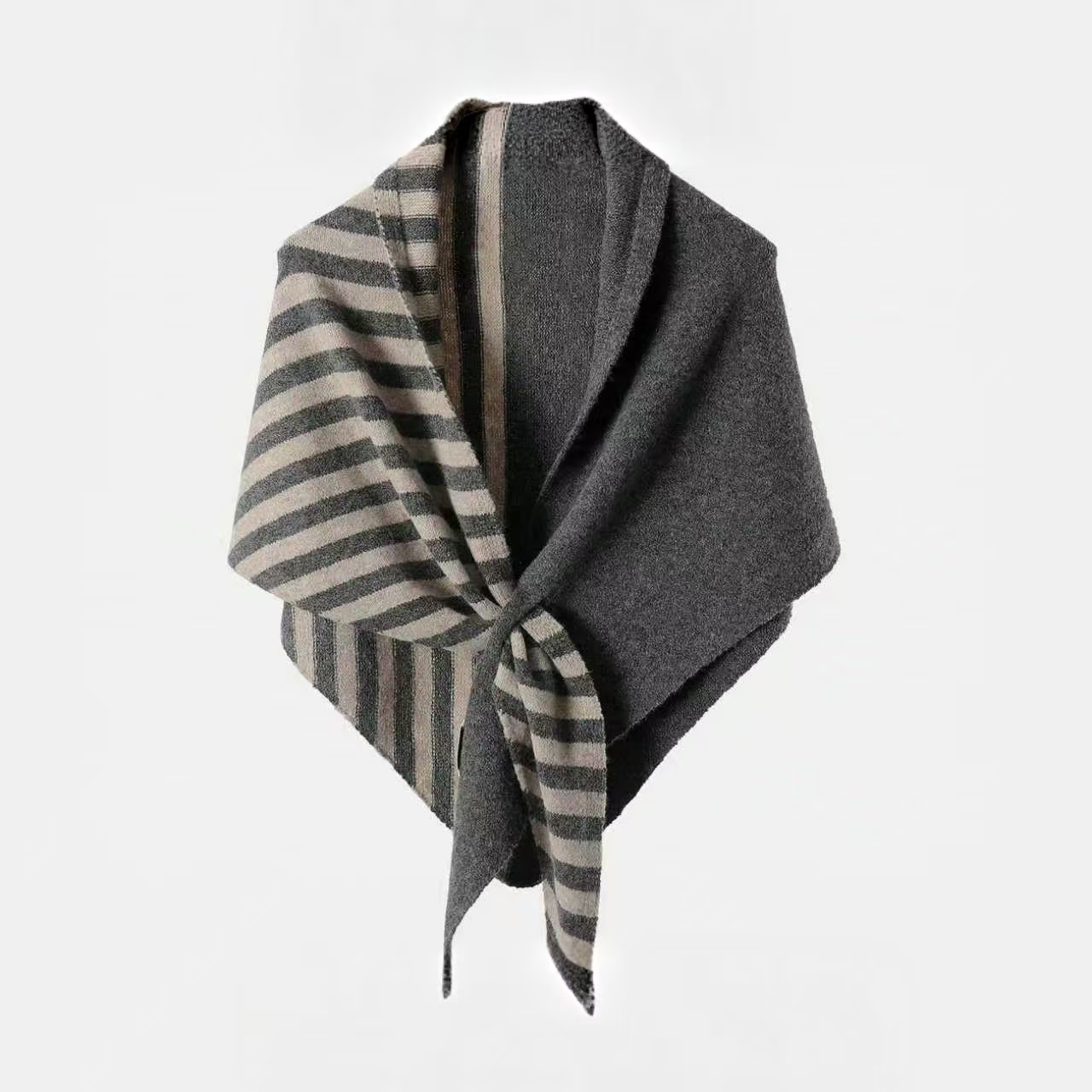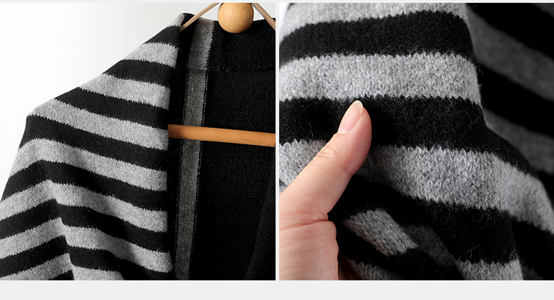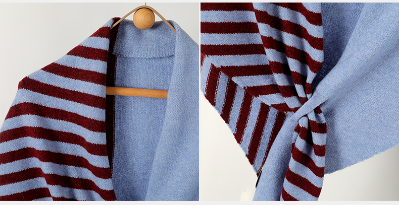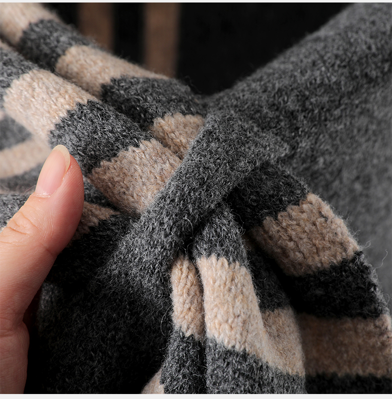 法式慵懶風|羊毛混紡條紋圍巾大披肩|保暖百搭