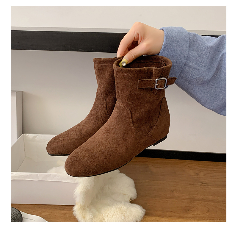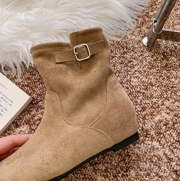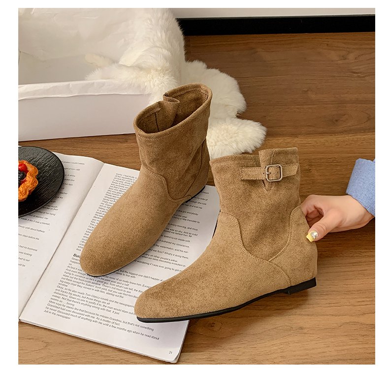 法式圓頭馬丁短靴|隱形內增高設計|西部風平底短筒靴
