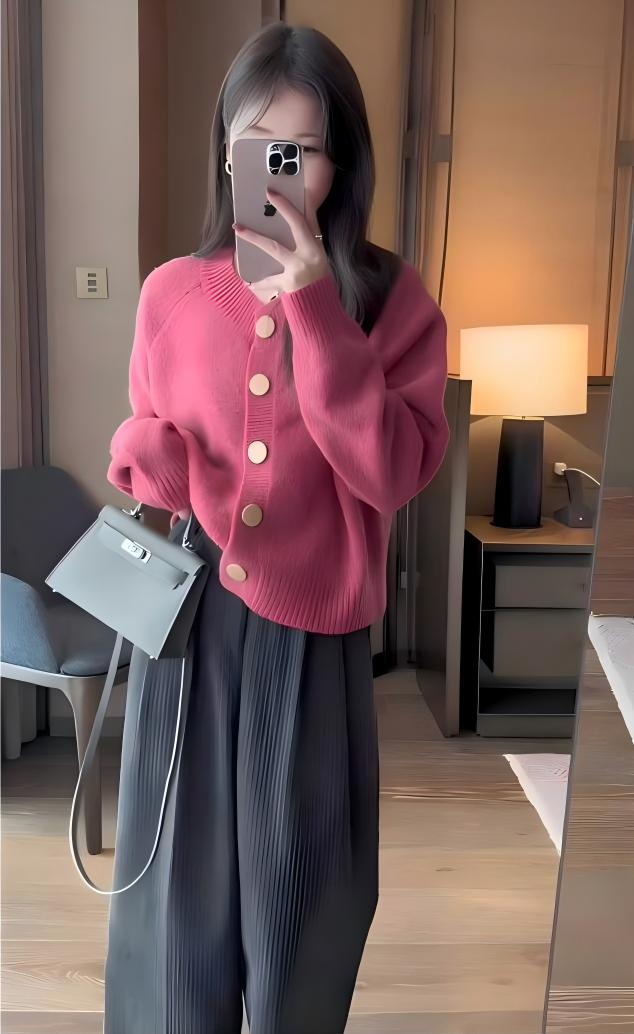 玫紅色毛衣