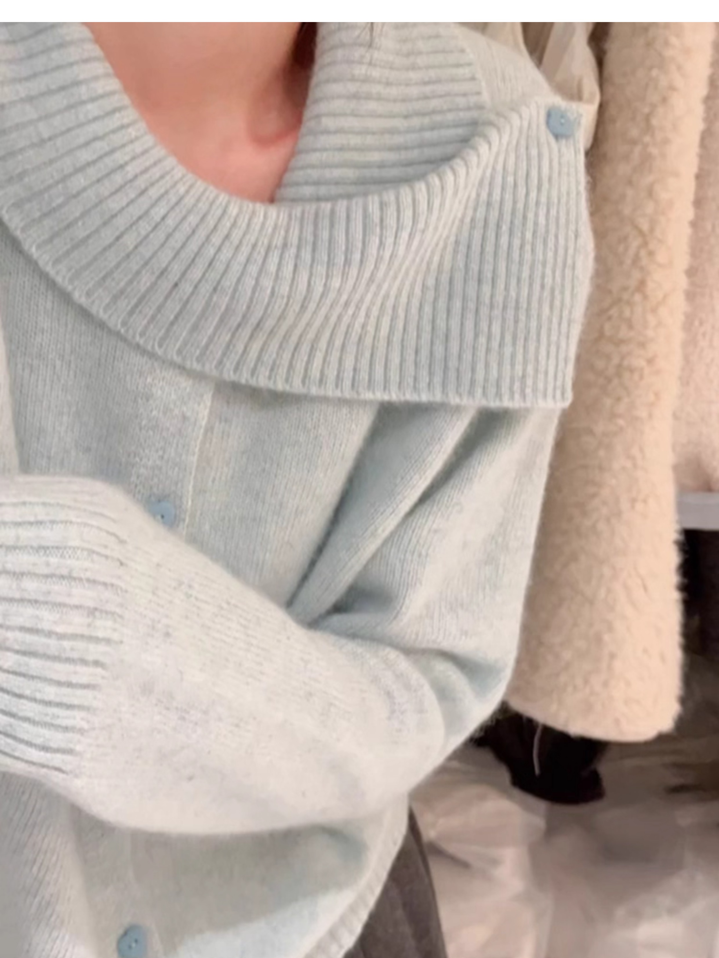 秋冬高級懶人套組|灰色系慵懶針織開衫|灰色高腰休閒褲|顯瘦顯高穿搭