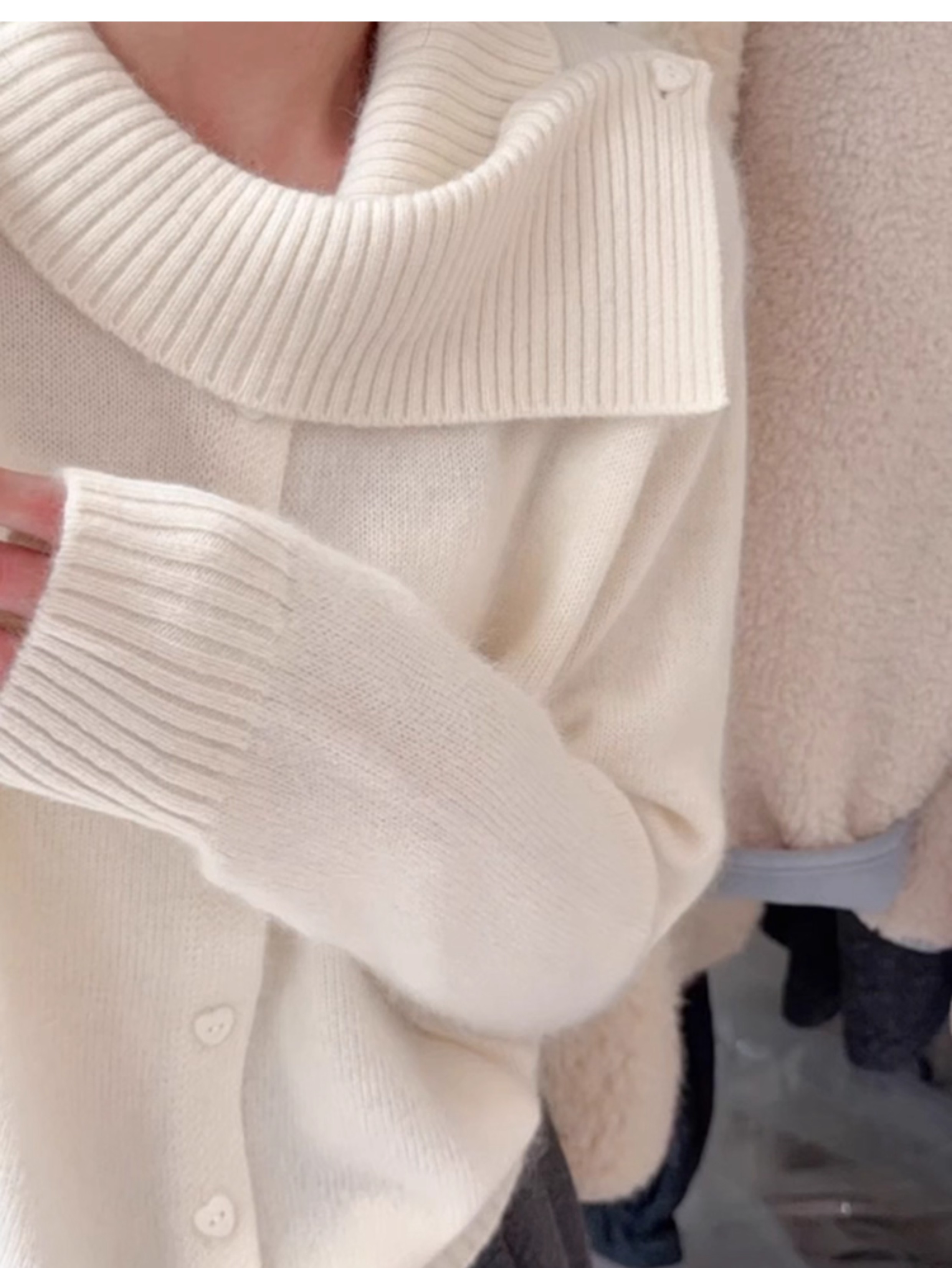 復古慵懶設計師套組|細節鈕扣高領毛衣 | 兩色入 | 顯瘦咖色七分褲