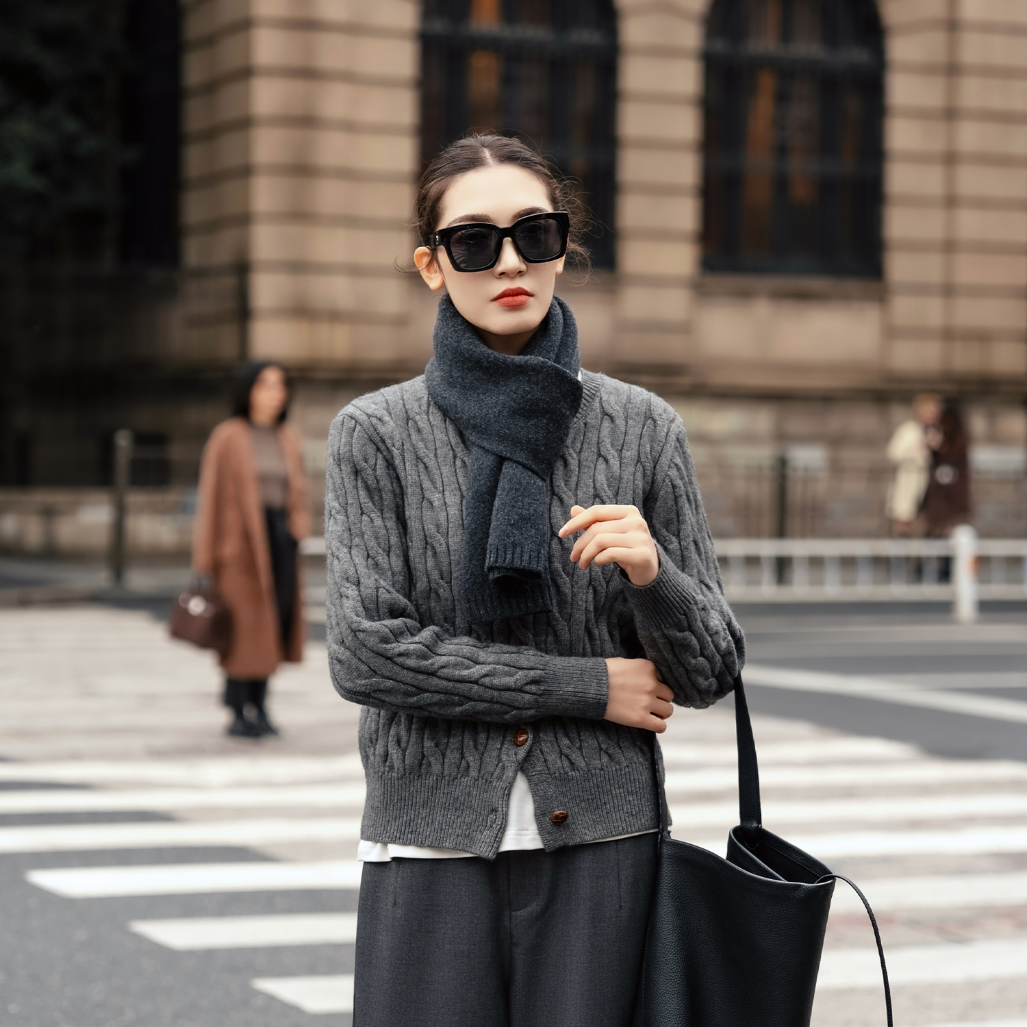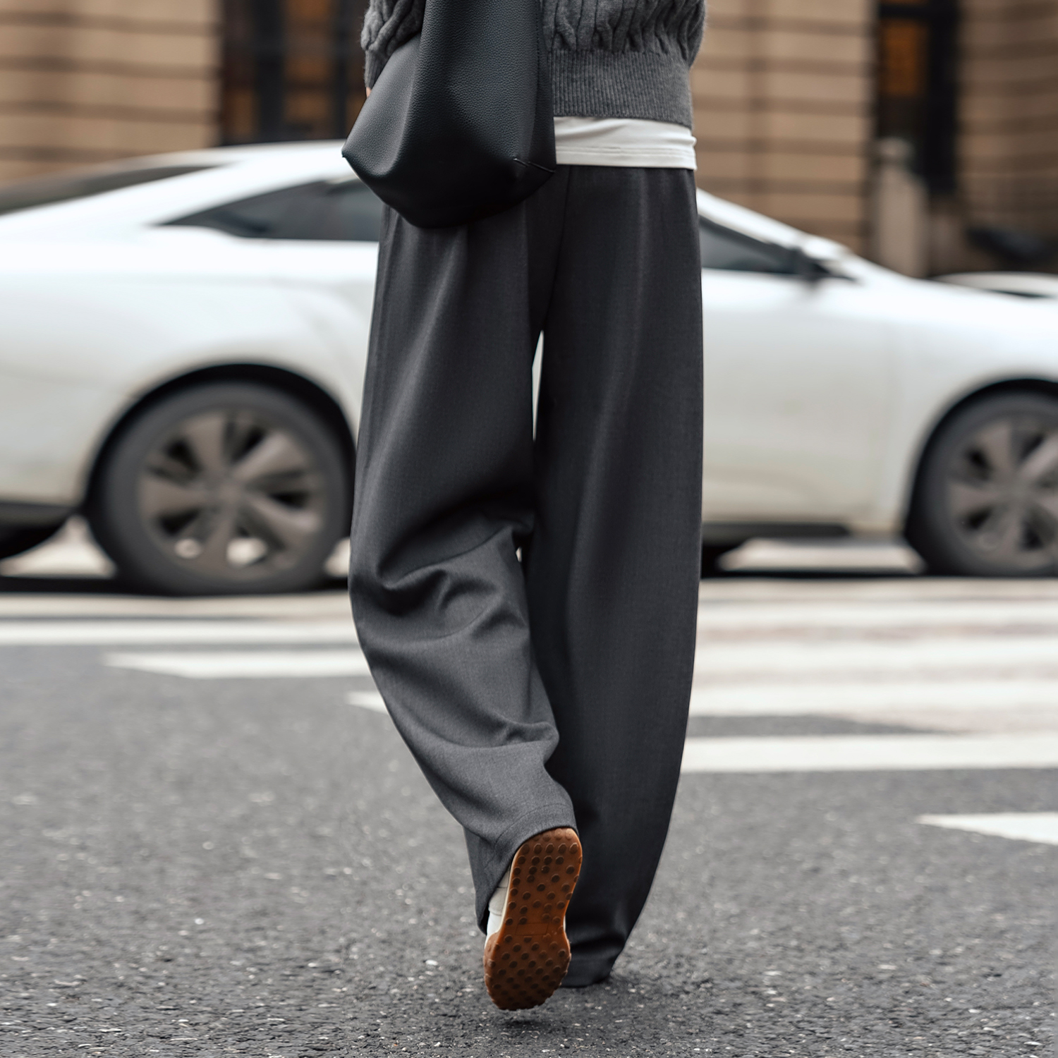 秋冬高級懶人套組|灰色系慵懶針織開衫|灰色高腰休閒褲|顯瘦顯高穿搭