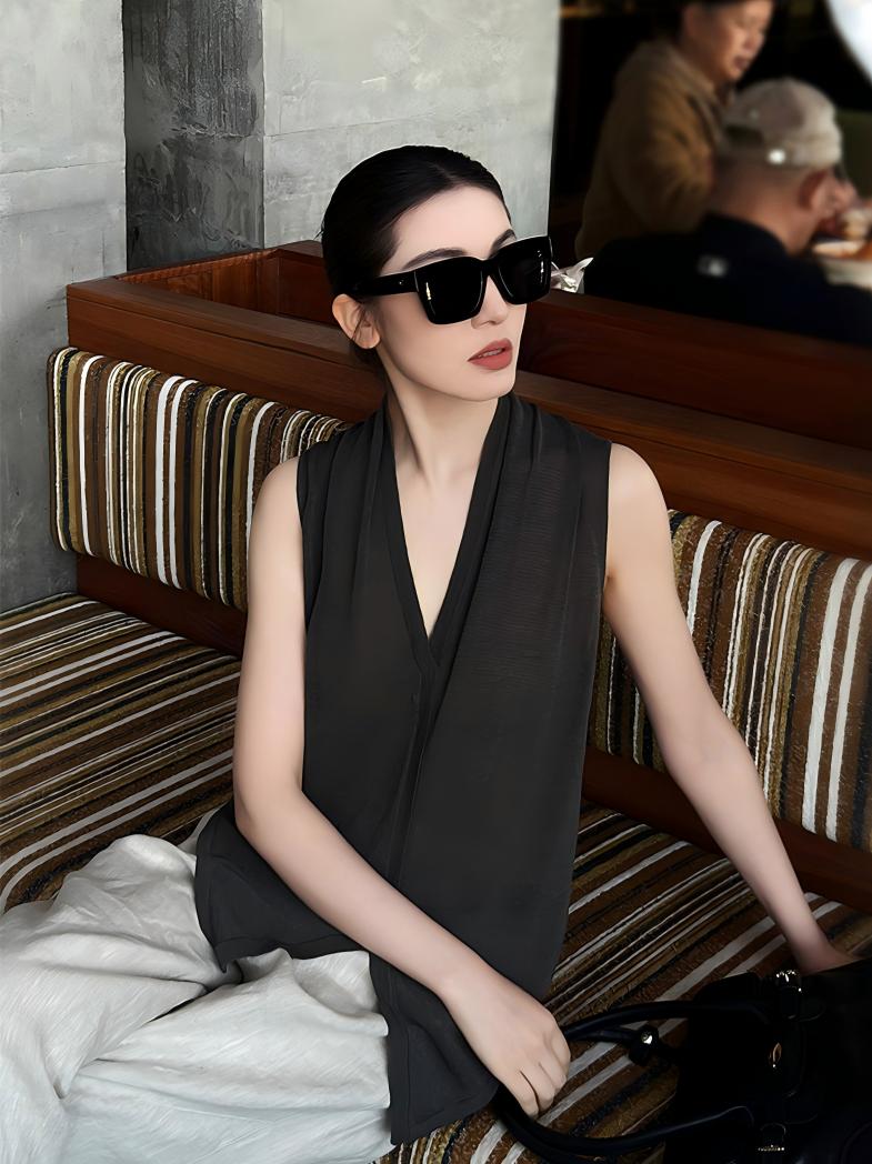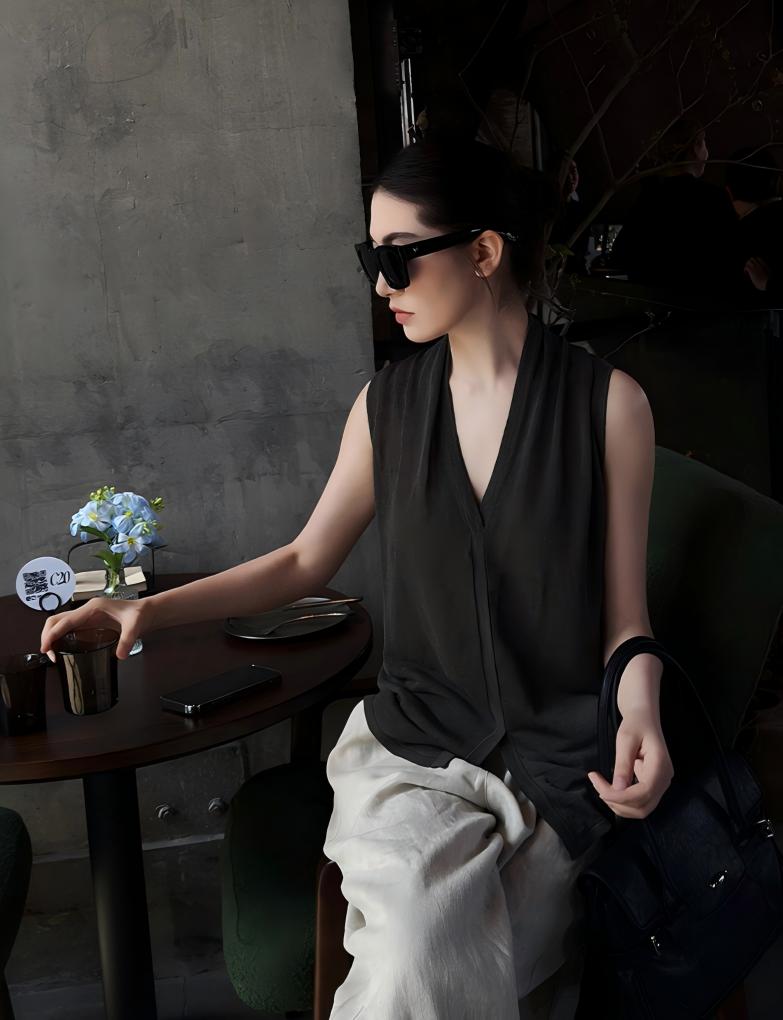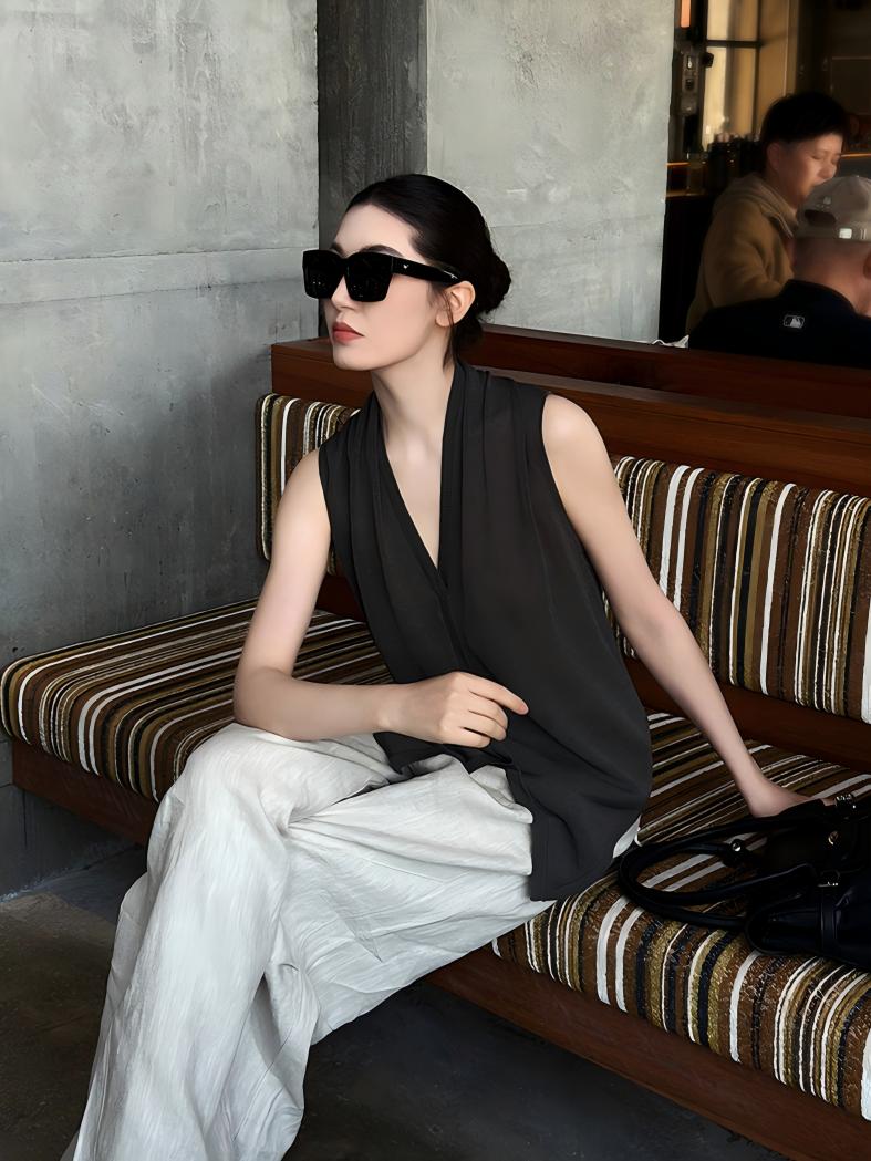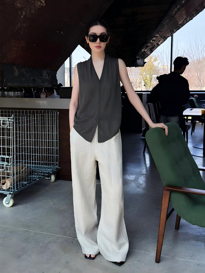 【預售】法式鬆弛感套裝|天絲V領無袖針織背心|棉麻闊腿長褲
