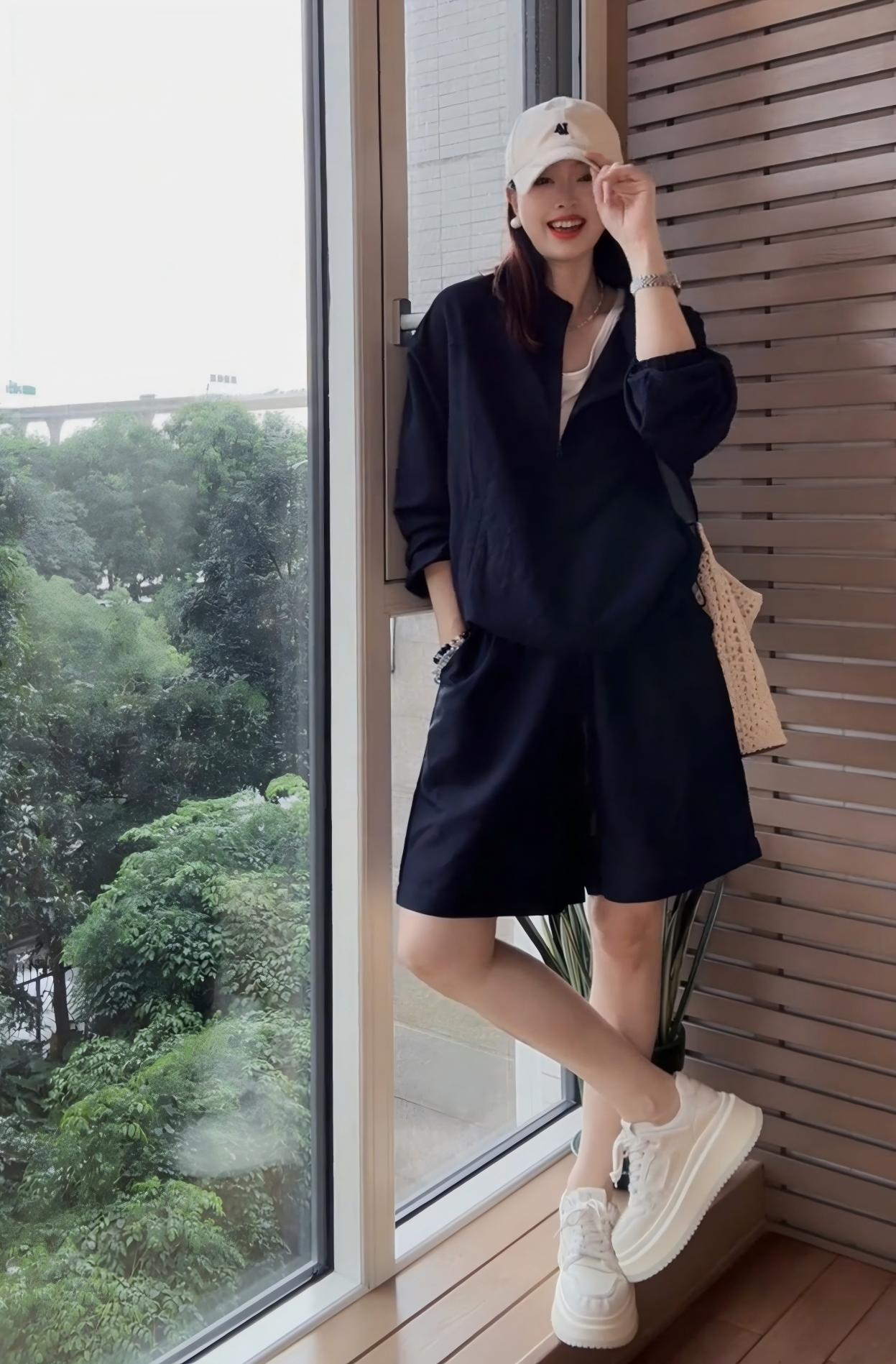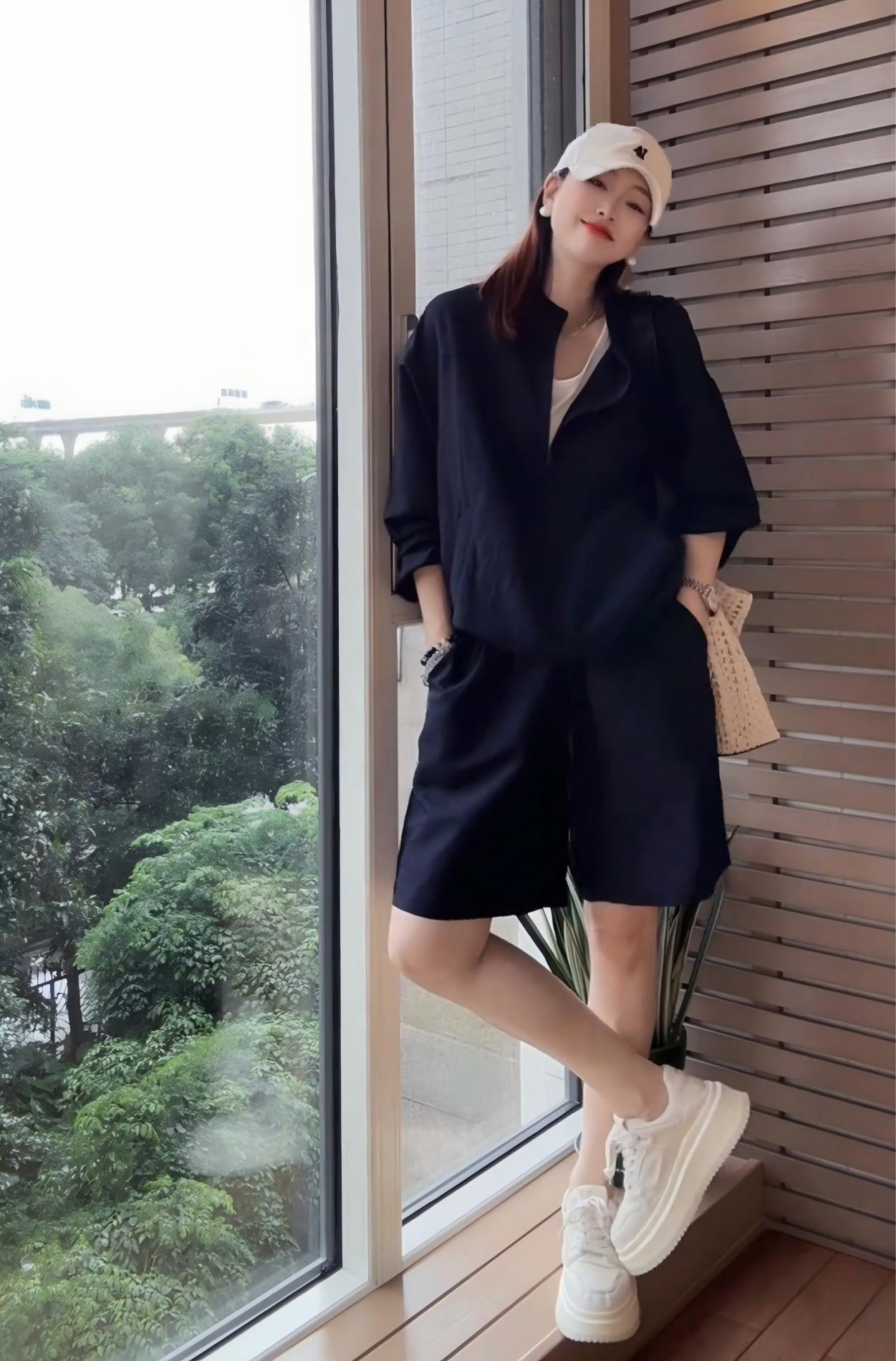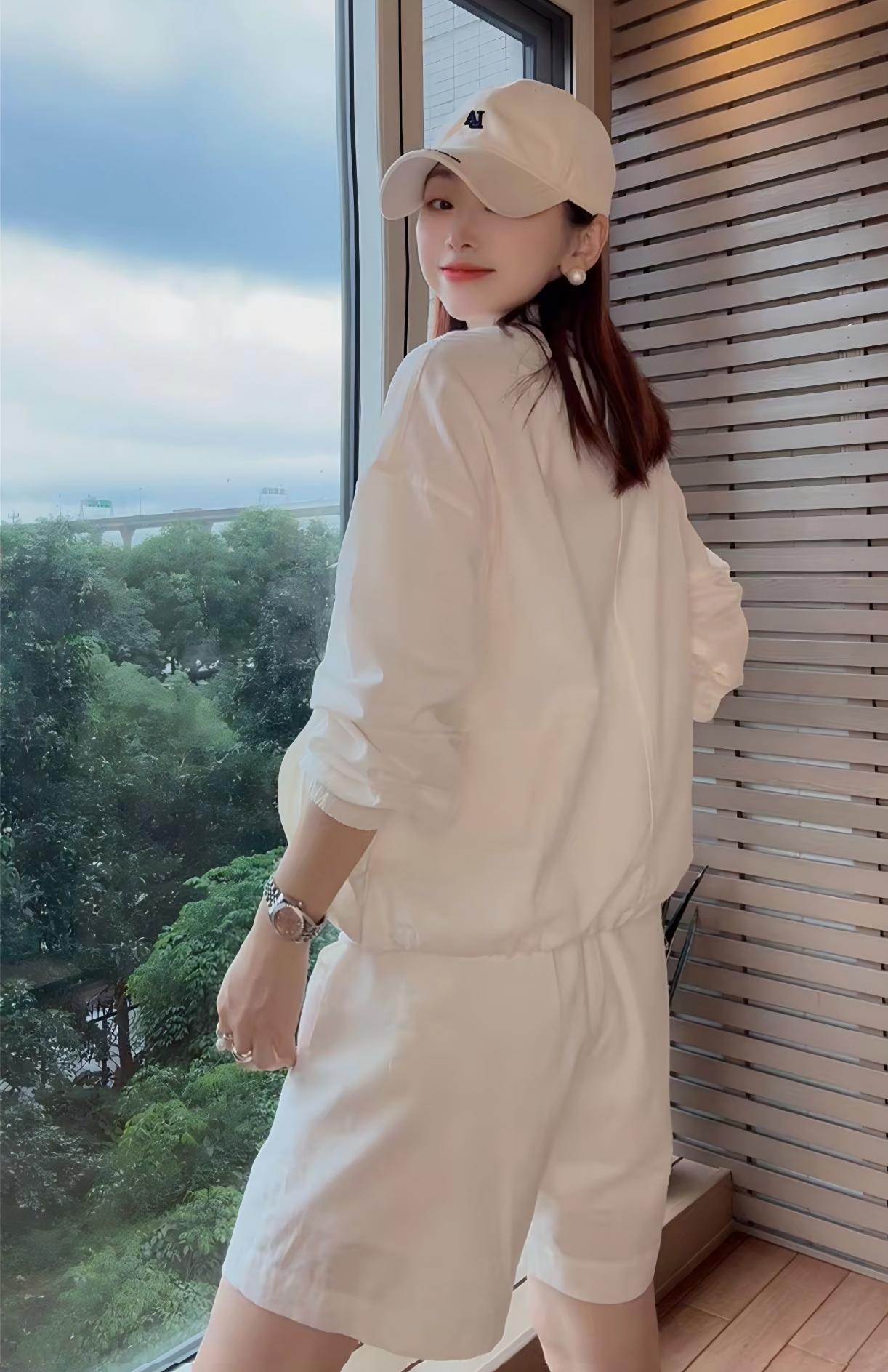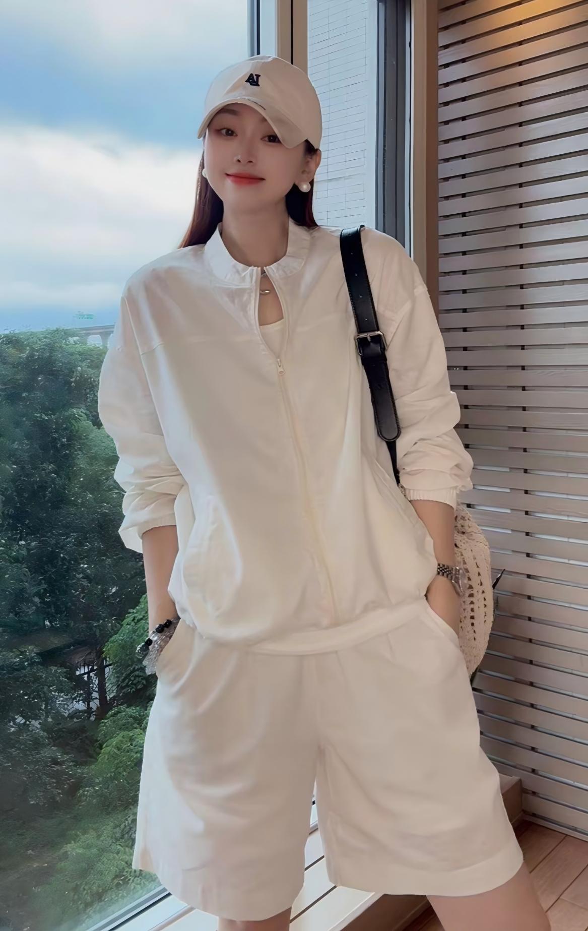 洋氣休閒運動套裝|棉麻輕薄防曬外套上衣+寬鬆闊腿短褲|舒適顯瘦兩件組