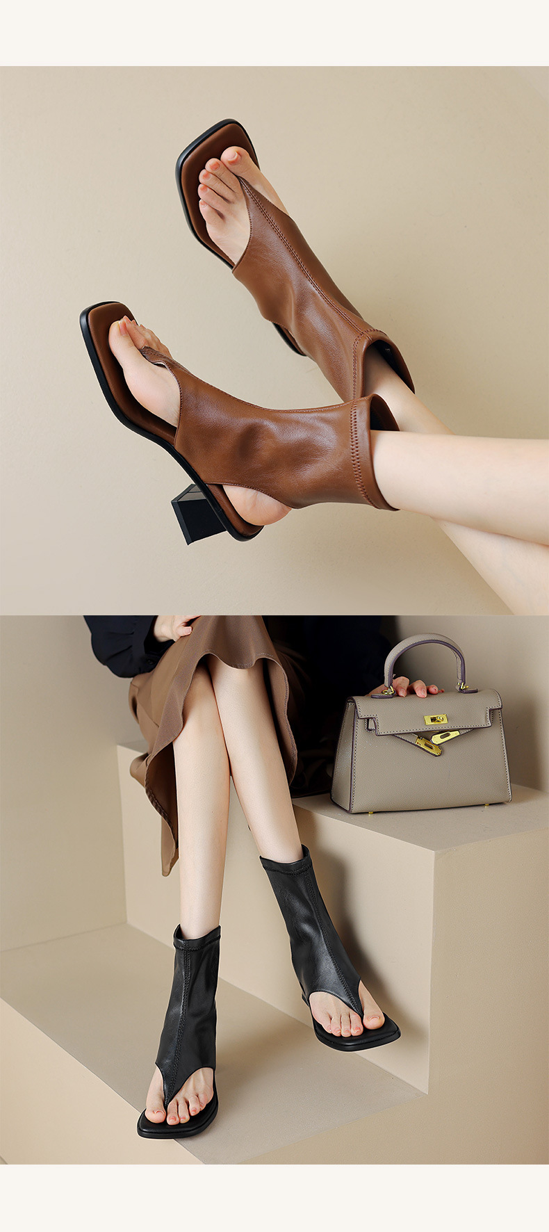 夏季限量款!波西米亞夾趾涼靴|粗跟羅馬短筒|彈力透氣材質|防滑耐磨底