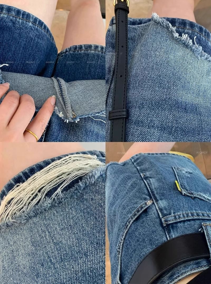 溫馨提示:麻豆上身的上衣有經過洗滌熨燙,跟剛出廠的衣服會有一點差別,牛仔短裙裙擺人工剪裁,每一條都有所不同,裙褲屬於高腰,褲筒較長。介意者請慎拍!