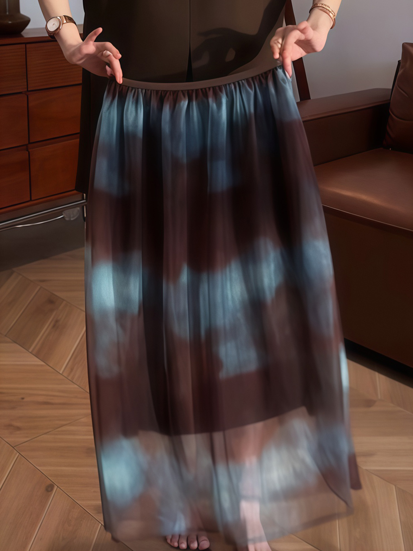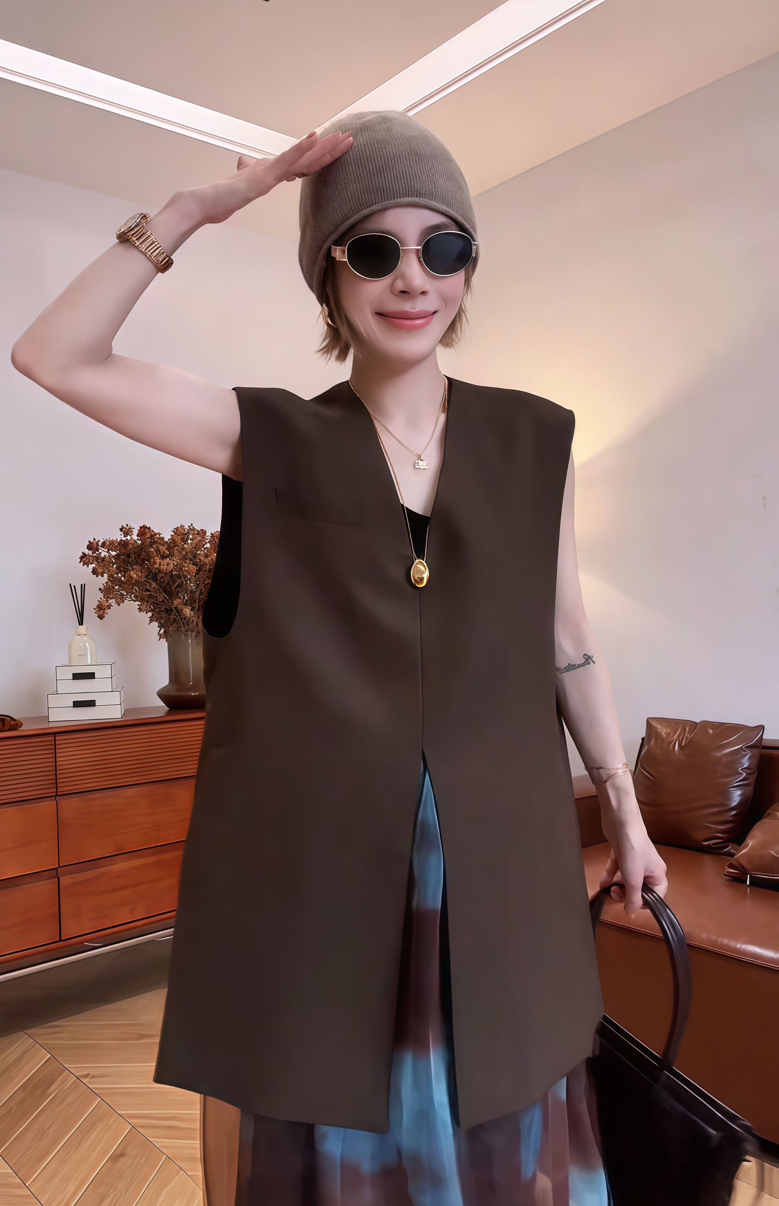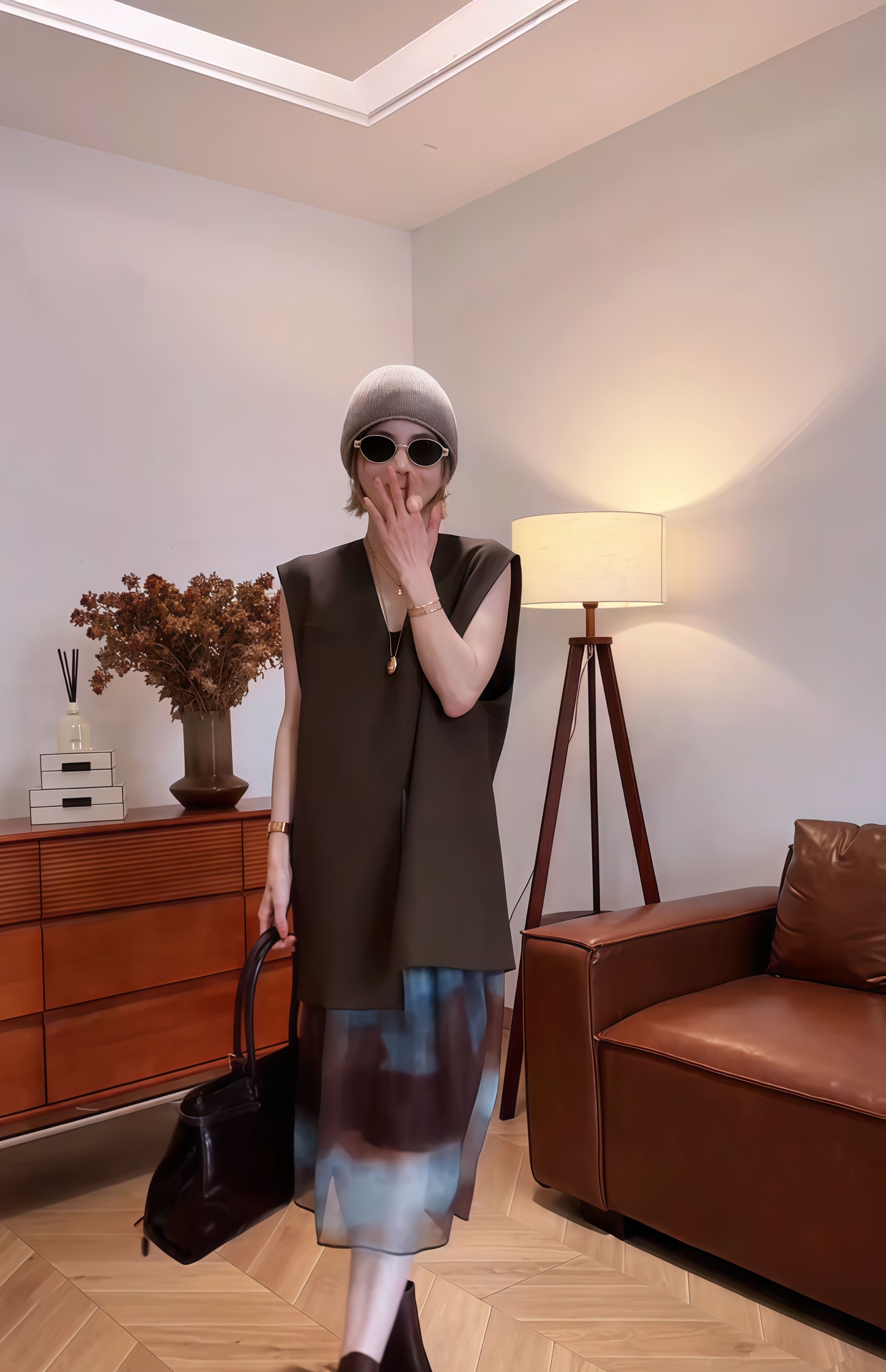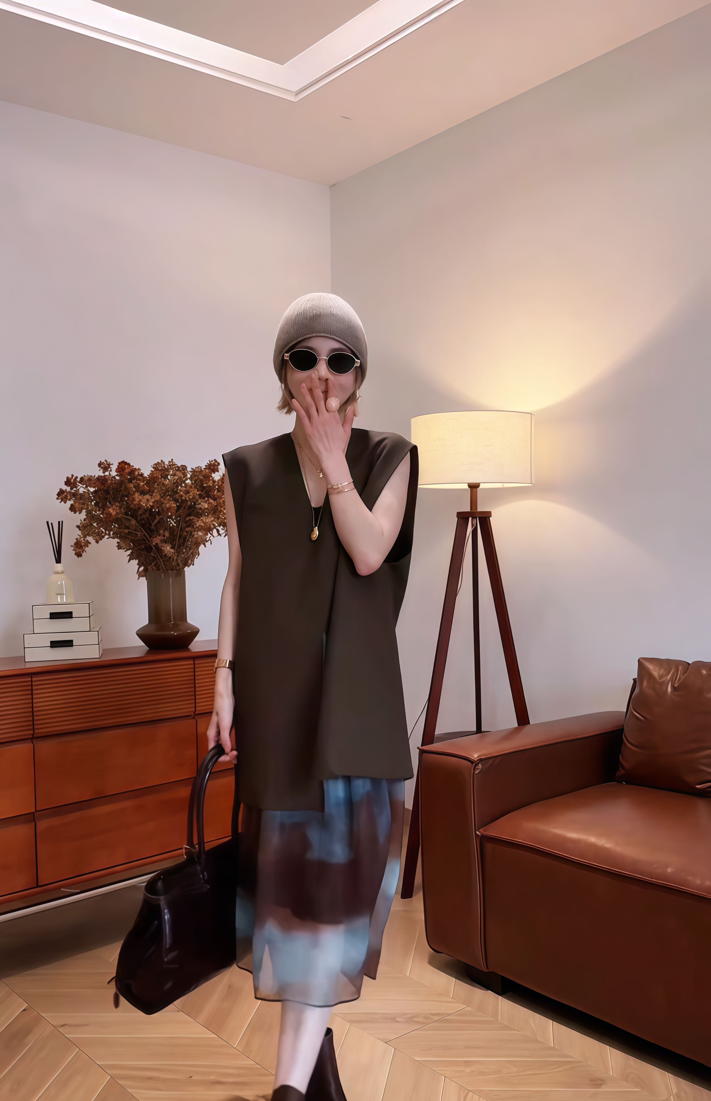 早秋時髦|西裝背心馬甲+扎染藍棕裙組